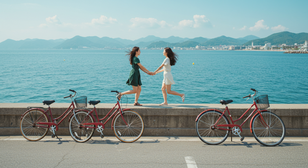 初心者に優しい理由として、天橋立のサイクリングコースは平坦で整備されており、勾配がほとんどないことが挙げられます。3.6キロメートルの砂嘴を徒歩で渡ると約50分かかりますが、自転車なら約20分で横断でき、効率的に観光を楽しめます。海風を感じながら松林の中を走る爽快感は、日本でも珍しい海岸沿いのサイクリング体験として人気です。