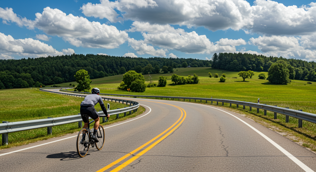 事前トレーニングとして以下の項目を段階的に積み重ねることが重要です。安全な道路でのコーナリング技術の練習、長距離ライドのスタミナを段階的に構築、標高差のある道路での走行経験、下り坂でのブレーキング技術の習得、そしてカーブでの安定速度維持の練習です。特に75kmという長距離に対応するため、平地での50km以上のライド経験を積んでから挑戦することをお勧めします。