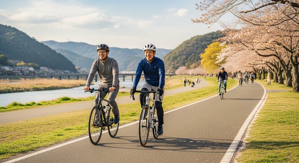 桂川サイクリングロードは、京都の豊かな自然と水辺の風景を体感できる貴重なフィールドです。嵐山からさくらであい館への道のりは、平坦でありながら風という試練を与え、単調に見えて季節ごとの美しい景色を見せてくれます。このルートを完走したときに得られるのは、単なるカロリー消費ではなく、「自分の力でこれだけの距離を走り切れた」という強い達成感です。しっかりと準備を整えて、京都の桂川サイクリングロードを存分に楽しんでください。