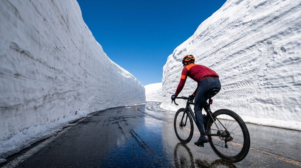 そして何より、春の開通直後に「雪の回廊」の中を自転車で走れるという唯一無二の体験ができる点が最大の魅力です。高さ数メートルの雪壁に囲まれながらペダルをこぐ体験は、他のどのヒルクライムコースでも味わえません。