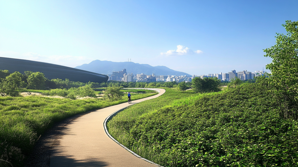 - 特徴: 都市的な風景と自然が融合したコース